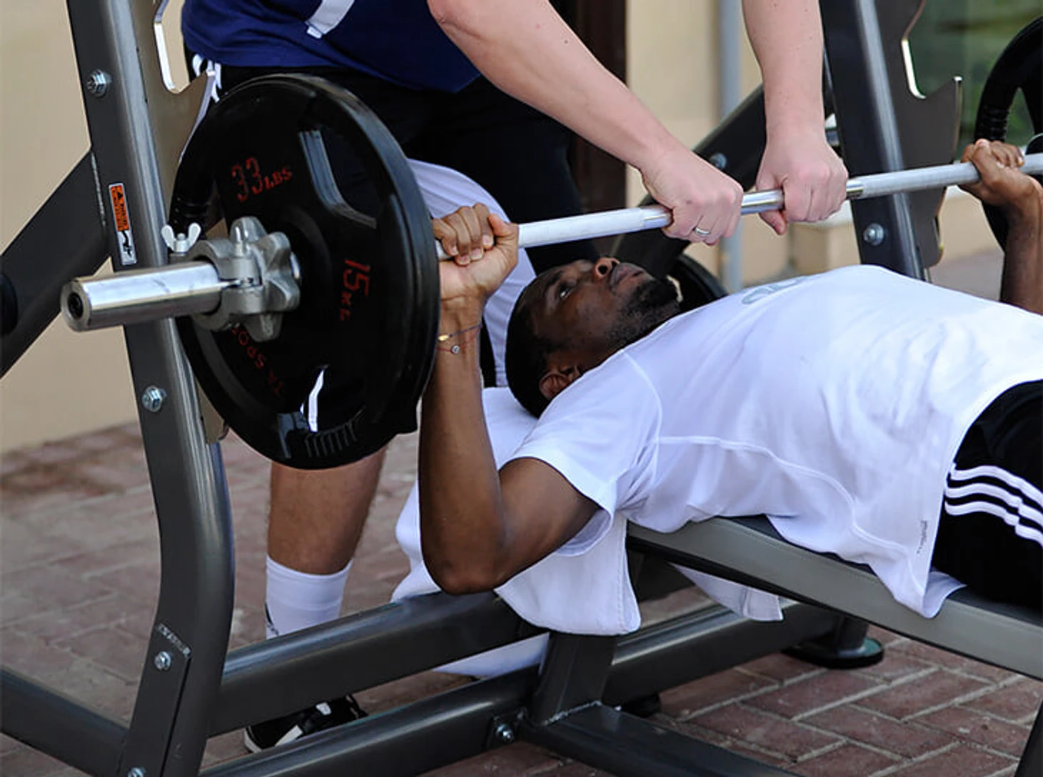 В Дубае мы купили небольшой тренажерный зал и поставили его практически у поля. Там были обычные станции: подтягивания, отжимания, жим штанги лежа, стойка для приседаний. Мы точно не использовали больше 70 килограммов, обычно вообще 40.