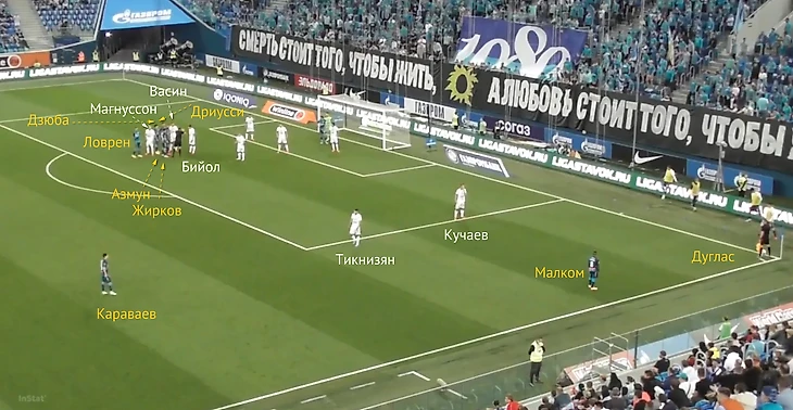 11. Второй классный матч подряд выдали Дриусси и Малком. Номинально вернувшись на левый фланг, Дриусси, конечно, не был к нему привязан – по ходу матча возникали ситуации даже со сдвоенным краем с Малкомом.