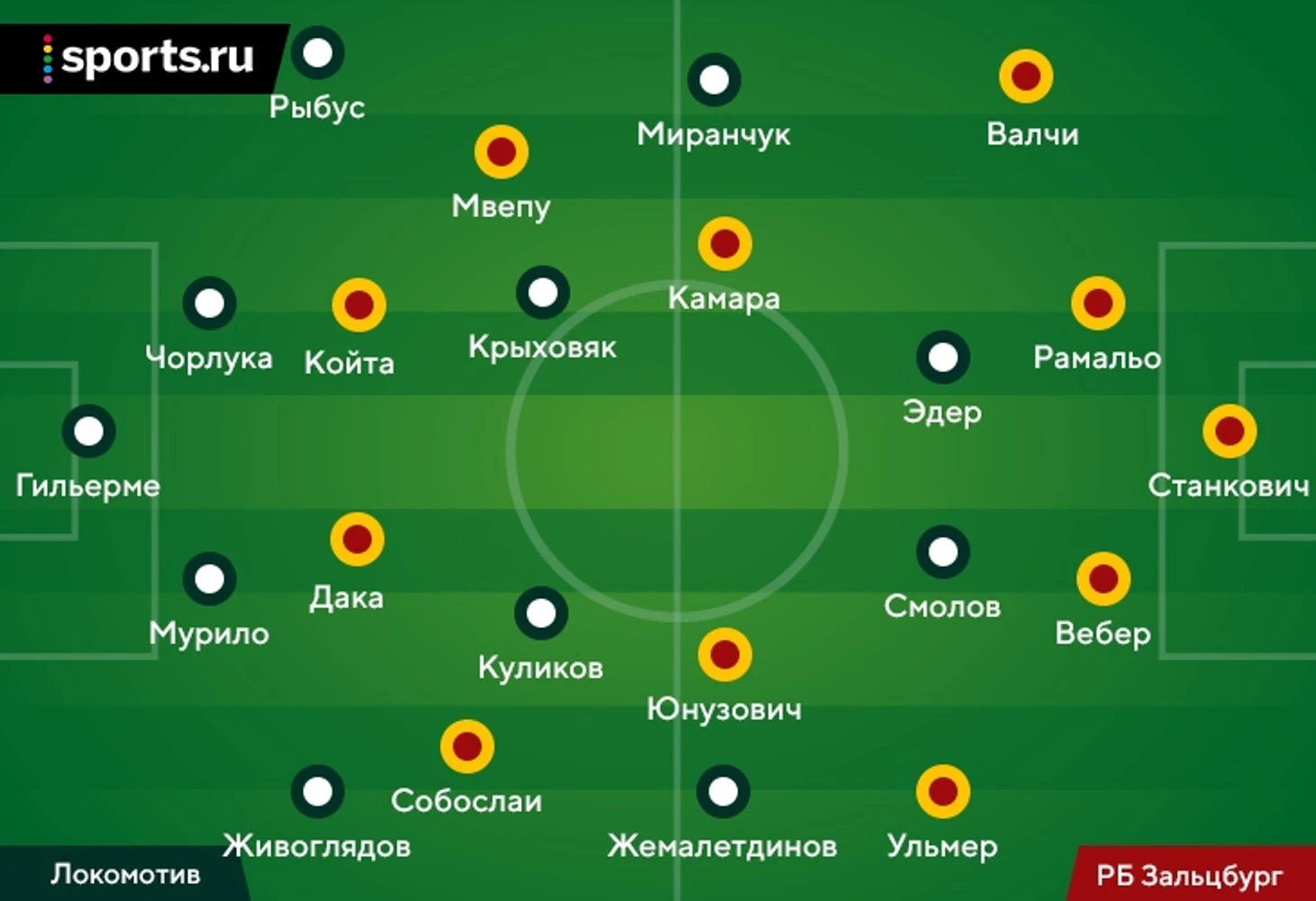 На игру с «Локо» американский тренер сделал лишь два изменения в старте: центрального защитника Онгене заменил Рамальо, а инсайда Окугаву – центральный полузащитник Камара. Выход Камара изменил позицию Мвепу – в последних трех матчах «Зальцбурга» он выходил в старте в середине поля, а против «Локо» появился на месте правого инсайда.