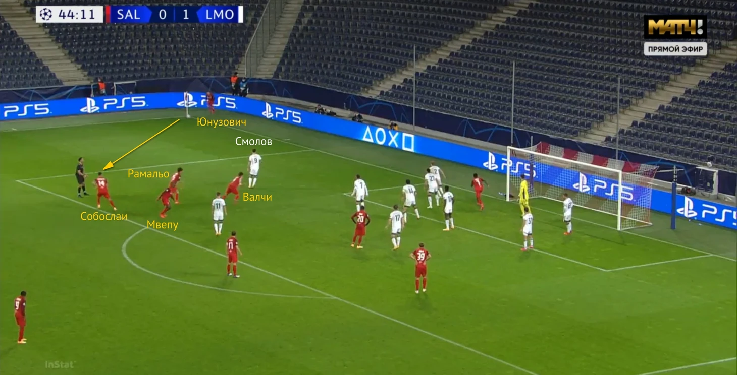 Собослаи действительно очень классно пробил, а вина Смолова, пытавшегося его накрыть, минимальна – «Зальцбург» воспользовался зонной обороной «Локо» при стандартах, на которую москвичи перешли именно с Николичем.