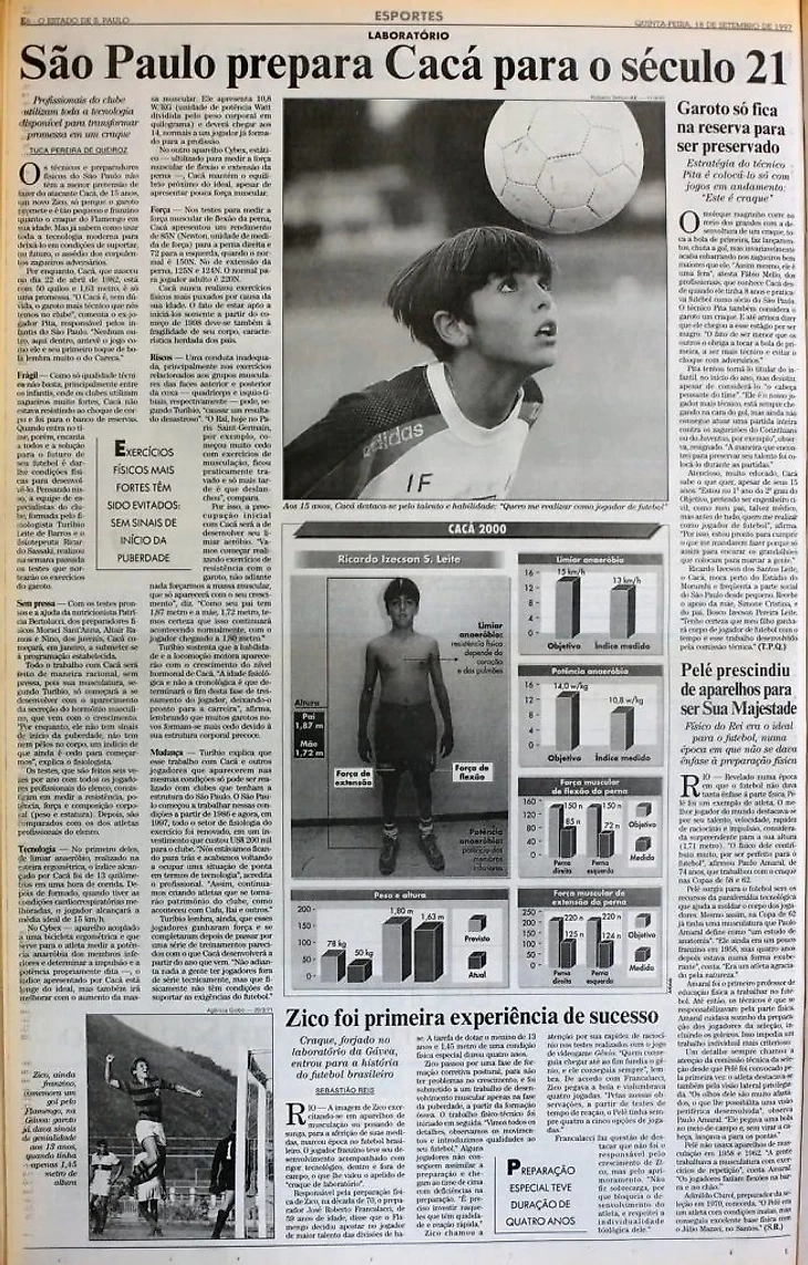 Кака было 15 лет, когда в газете Estado de São Paulo вышла статья «Сан-Паулу» готовит Кака к XXI веку». Рост будущей звезды «Милана» тогда составлял 163 см при весе 50 кг. Несмотря на бросающиеся в глаза способности, мальчик отличался субтильным телосложением и не выдерживал соперничества с большими центральными защитниками своей возрастной категории.