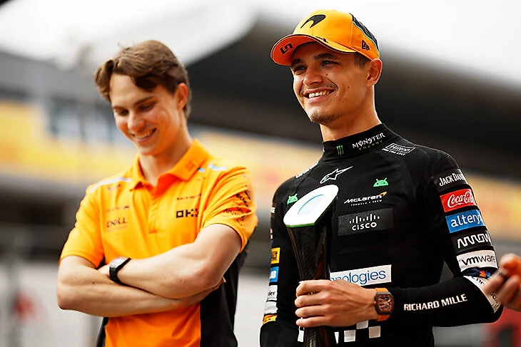 Причем в последний раз – взял второе место на Гран-при Австрии у Карлоса Сайнса в тот момент, когда Оскару место в топ-3 вообще прилетело абсолютно внезапно. Любой гонщик – особенно вчерашний новичок – на месте №81 скорее предпочел бы не рисковать и просто доехать бы до наградного шампанского без дополнительных опасностей, но Пиастри ринулся в опасный объезд быстрой «Феррари» по внешней в метре от гравия!