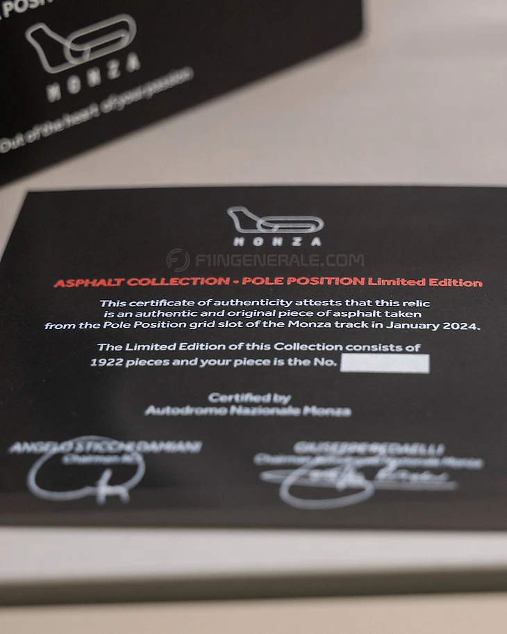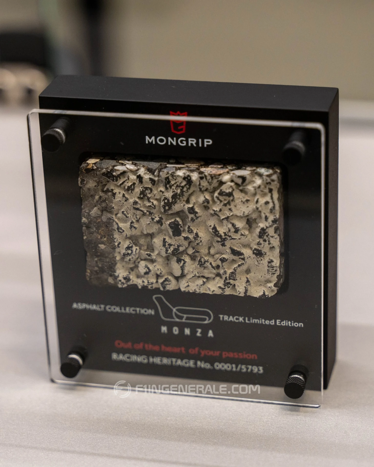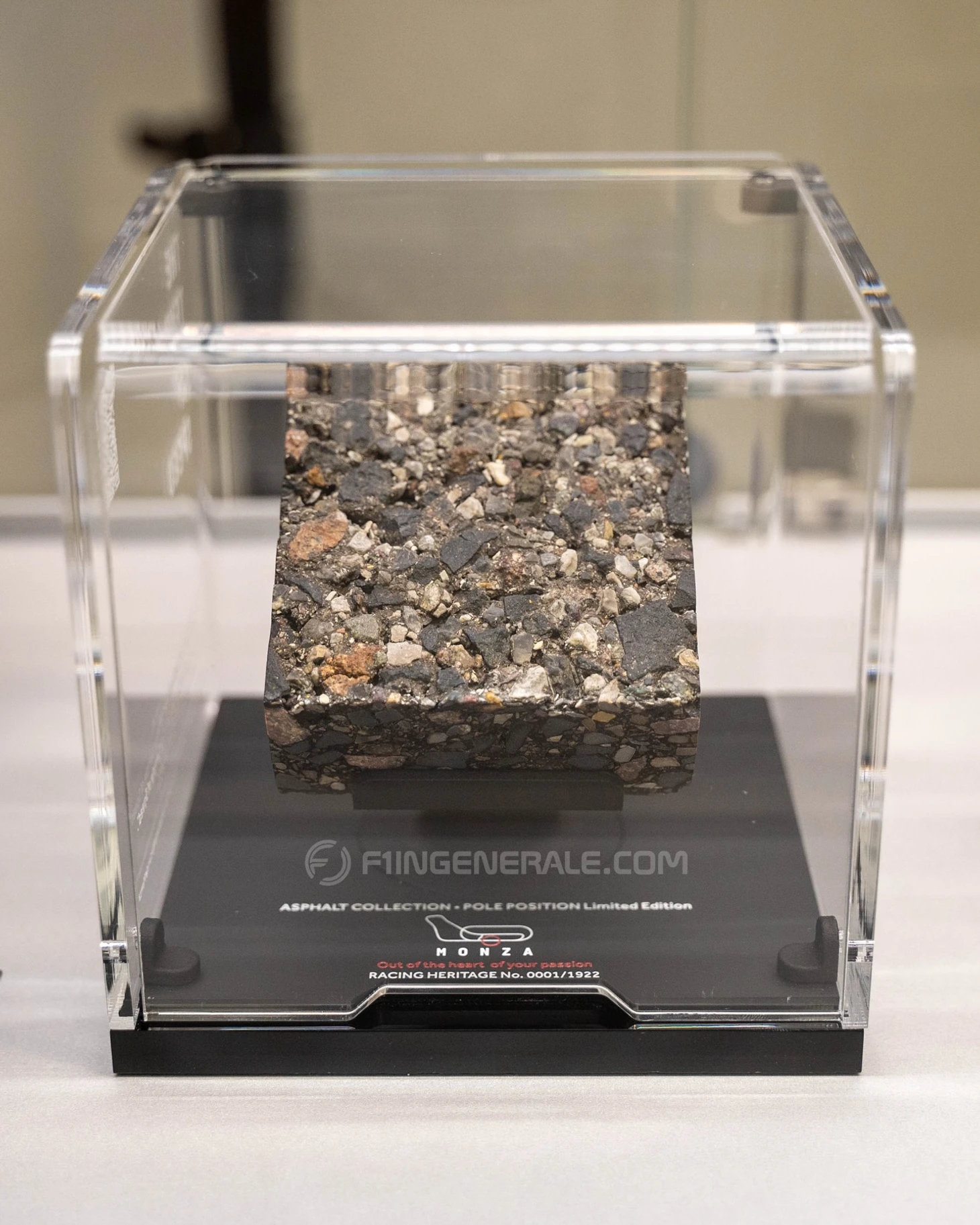 На той же пресс-конференции объявили, что в продажу поступят лимитированные куски асфальта с трассы в «Монце». У болельщиков появилась уникальная возможность унести с собой часть самой быстрой трассы календаря «Формулы-1». Эти сувениры появились благодаря работам по реконструкции и замене асфальта на трассе, проведенным в январе этого года.