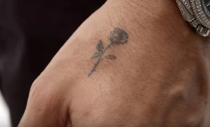 «Мне всегда хотелось что-то себе на руку, потому что у меня был шрам. Гоночный шрам. Когда мне было восемь, моя рука застряла под картом, который я пилотировал. Он проехал по моей перчатке и сорвал кусок сухожилия. Теперь у меня здесь роза».
