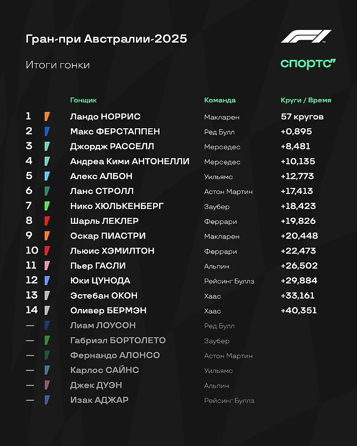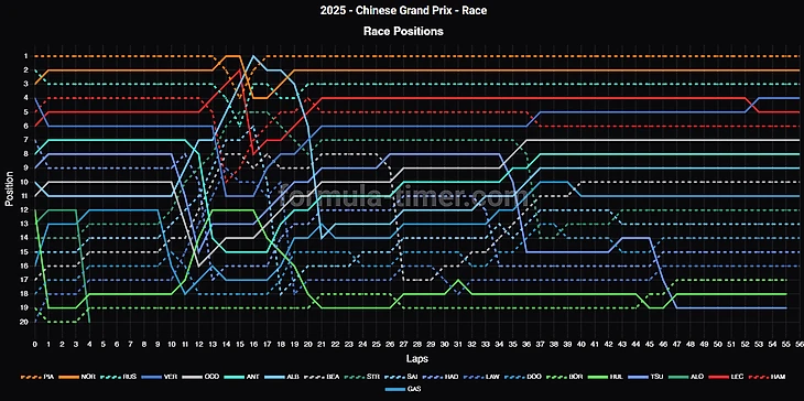 Гран-при Китая подарил предсказуемый дубль «Макларена», но море сюрпризов: спринтерский триумф Хэмилтона, сразу три дисквалификации (обе «Феррари» и Пьер Гасли) и неожиданный прорыв «Хаасов»: Эстебан Окон взлетел на пятое место, а Оливер Бермэн – на восьмую.