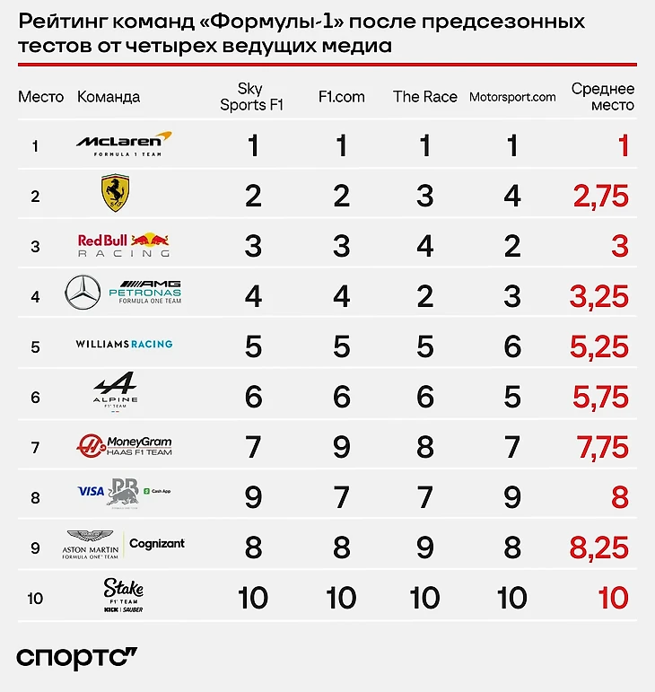Рейтинг силы в «Формуле-1» перед сезоном: доминирования не будет?