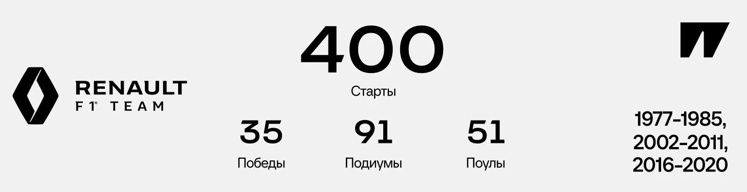«Рено» участвовала в «Формуле-1» в качестве заводской команды трижды − с 1977-го по 2020-й. После первой победы Жана-Пьера Жабуя в 1979-м последовали успехи Алена Проста и Рене Арну, но чемпионских титулов не было.