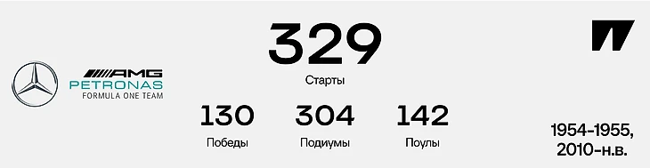 Вернувшись в «Ф-1» в 2010-м – после последнего участия в качестве команды в 1955 году – «серебряные стрелы» начали рекордную серию, в ходе которой в период с 2014-го по 2021-й выиграли 8 Кубков конструктора подряд.