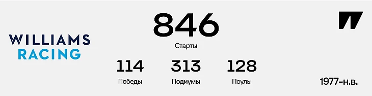 «Уильямс» дебютировала в 1978-м и с тех пор добилась немалых успехов: 7 титулов чемпиона мира для гонщиков, 9 титулов Кубка конструкторов, а также 114 побед и 128 поул-позиций.