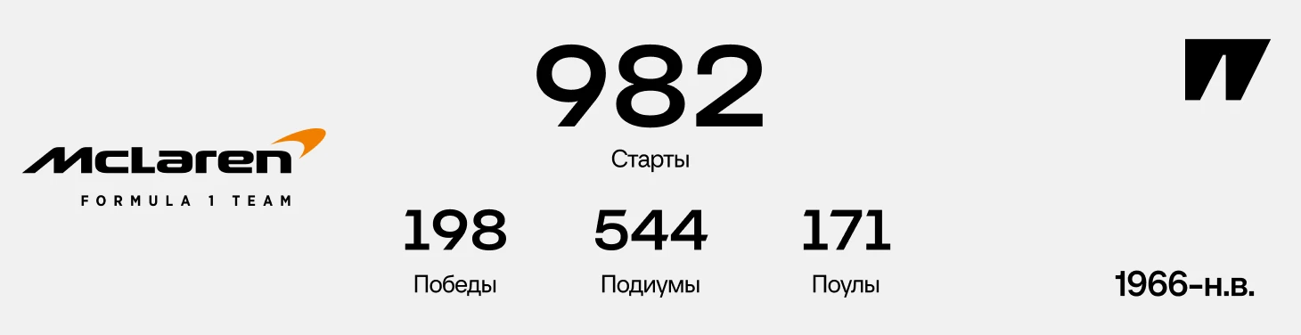 В отличие от итальянцев, британцы пока не дотянули до тысячи стартов, но их пилоты 12 раз становились чемпионами мира. За «Макларен» выступали Ален Прост, Айртон Сенна и Льюис Хэмилтон. Команда из Уокинга также 9 раз брала Кубок конструкторов и намерена развивать успех 2024 года.