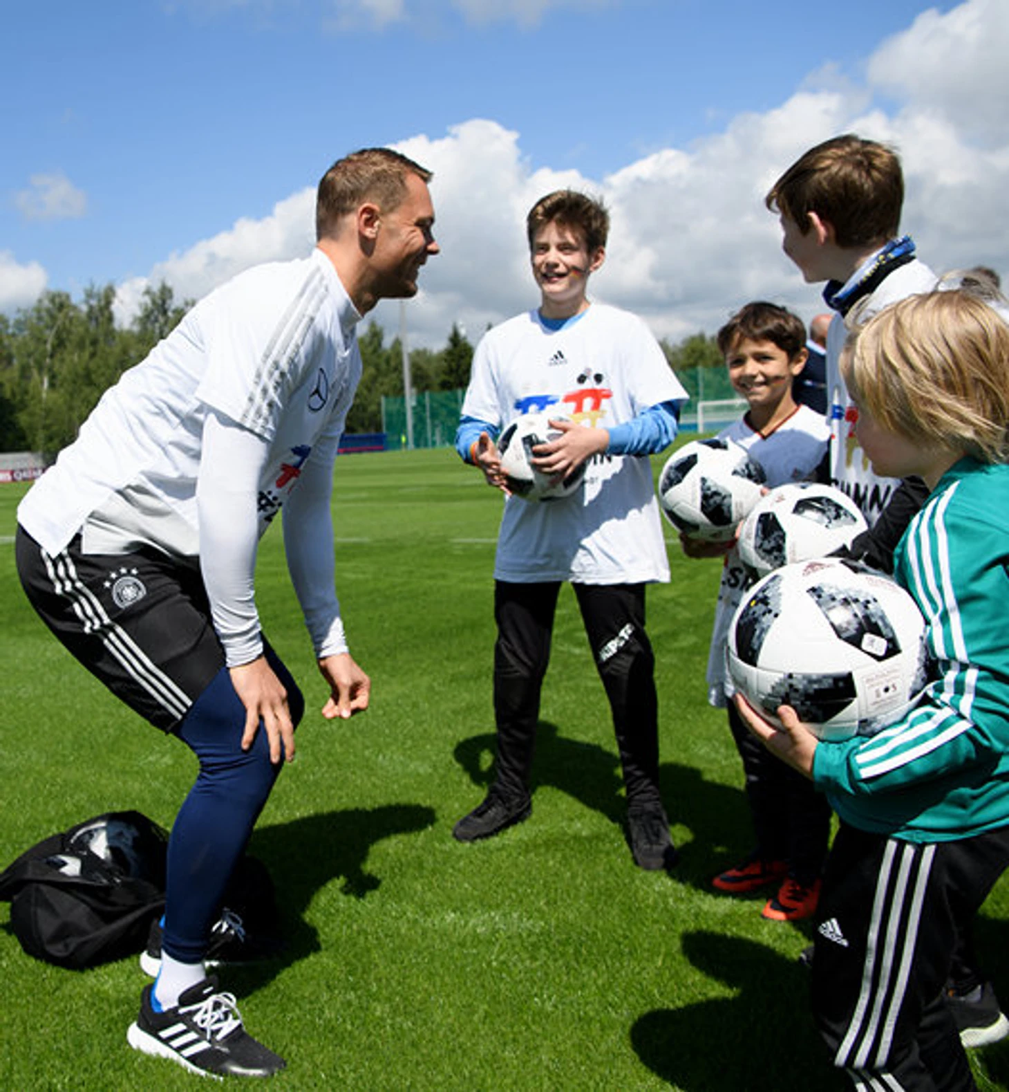 Мячи будут переданы шести организациям: местной школе, детскому интернату для инвалидов в Ватутинках, Детской футбольной лиге, Любительской футбольной лиге, спортшколе ЦСКА и Немецкой школе при посольстве Германии в Москве – она же в течение четырех лет получит спонсорскую помощь от сборной на сумму 80 тысяч евро.