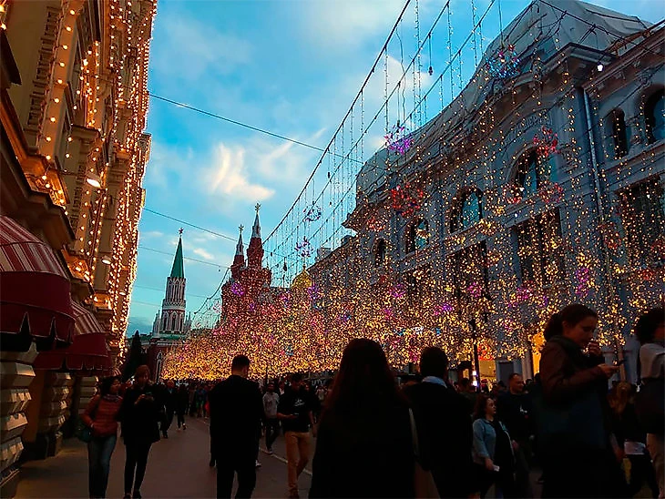 Никольская улица – одна из самых красивых в Москве, но так ярко там еще не было.