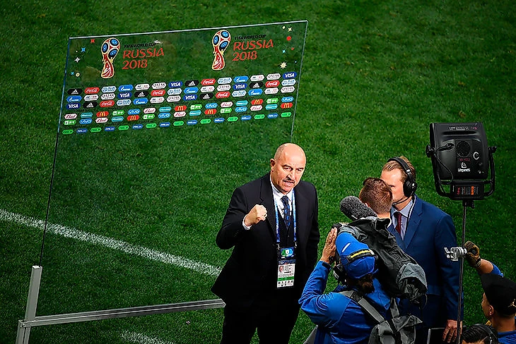Затем Черчесов поговорил с корреспондентом «Матч ТВ» Дмитрием Заниным, который жестко критиковал сборную до ЧМ.