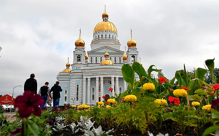 И ещё: а храм, который просто всунули меж домов (в здравом уме никто бы там храм не построил или не пристроил бы к нему эти здания) не "выбивается из стиля"