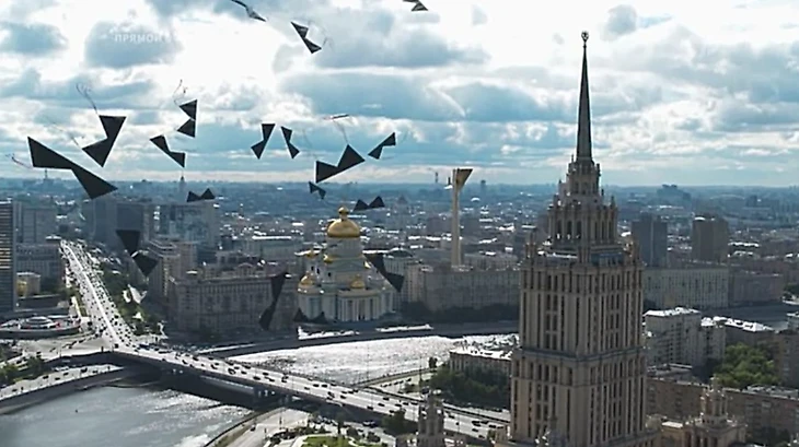 В видео с церемонии открытия чемпионата мира в России показали Смоленскую набережную в Москве. Красивый вид, правда? Это скриншот из официального ролика, его можно найти в ютубе у «Первого канала».