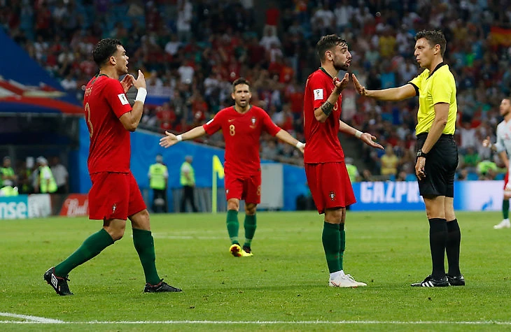 Арбитр взял короткую паузу, выслушал видосудей и показал на центр. Система VAR не выручила португальцев.
