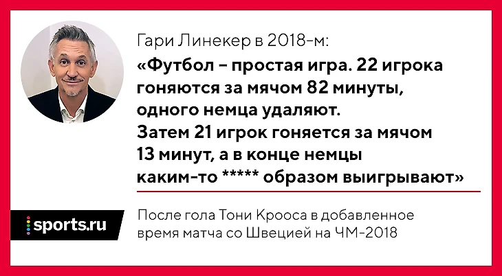 Гари, конечно, беспощадно эксплуатировал свои же слова. Посмотрев Германия – Швеция на ЧМ-2018, он написал в твиттере: