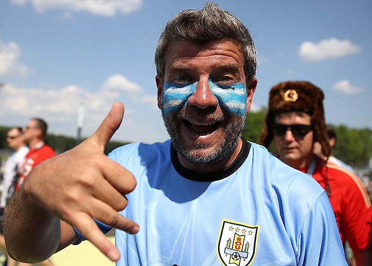 15:26 Уругвайцы со своим фирменным зарядом «Volveremos, volveremos» перед стадионом в Самаре.