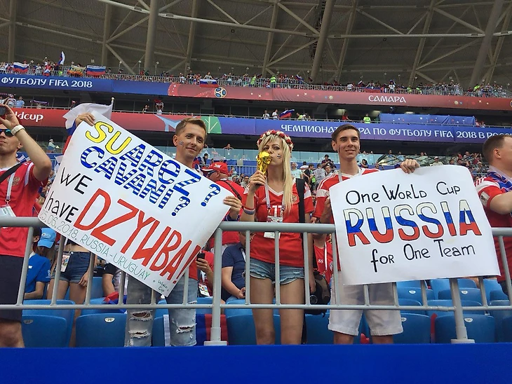 Суарез? Кавани? У нас есть Дзюба. Один кубок мира для одной команды! Плакаты из Самары: