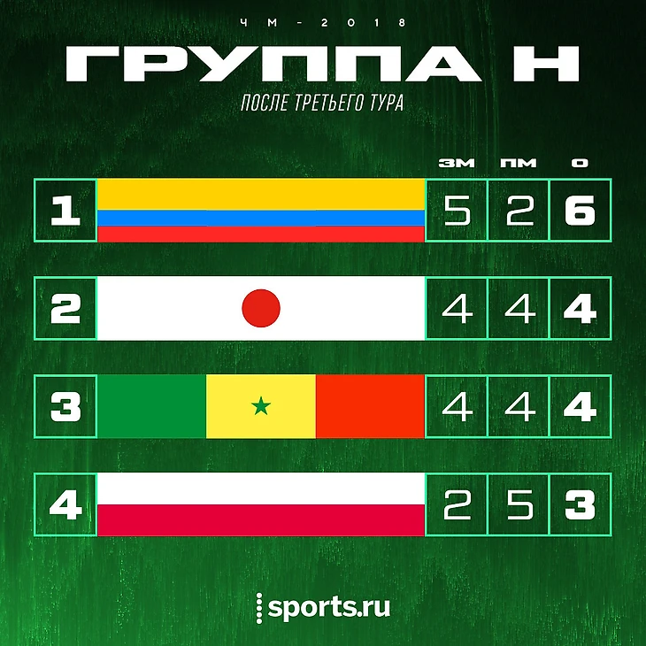 1. У Японии и Сенегала одинаковая разница забитых и пропущенных – 0 (по 4:4).