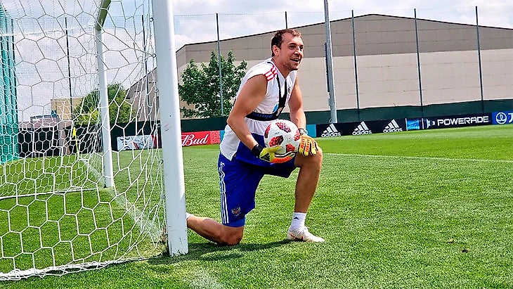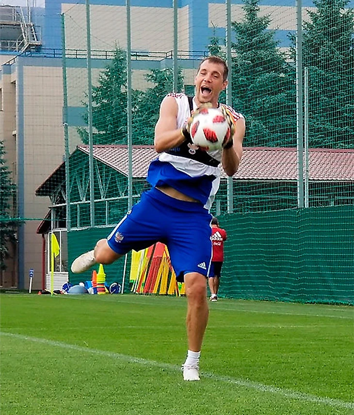 Артем Дзюба провел в воротах часть сегодняшней тренировки перед матчем с Испанией.