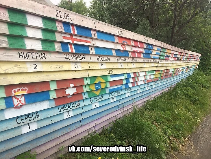Улицу Малая Кудьма в Северодвинске по праву можно считать центром футбола в городе. Почему? Все просто. На заборе одного из домов нарисованы результаты всех матчей ЧМ, начиная с группового этапа. Место осталось как раз под четвертьфиналы, полуфиналы и финал: