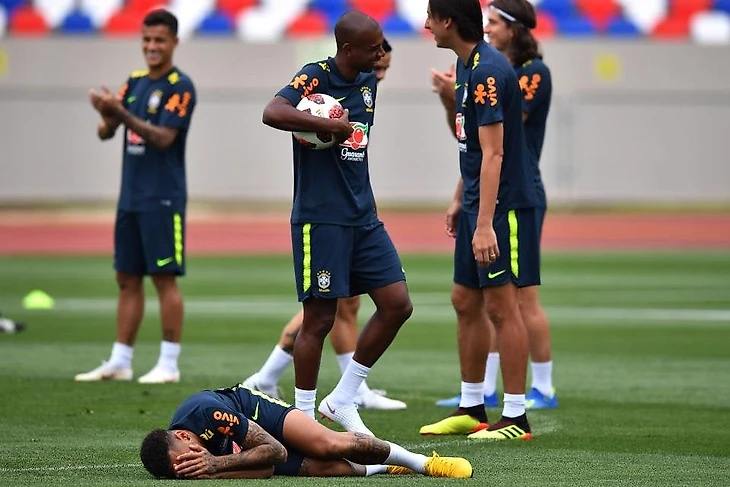 Фото Неймара с тренировки сборной Бразилии наводит на мысли, что 14 минут, проведенных на газоне за время ЧМ – хитрый план победы. Делайте выводы, это с сегодняшней тренировки: