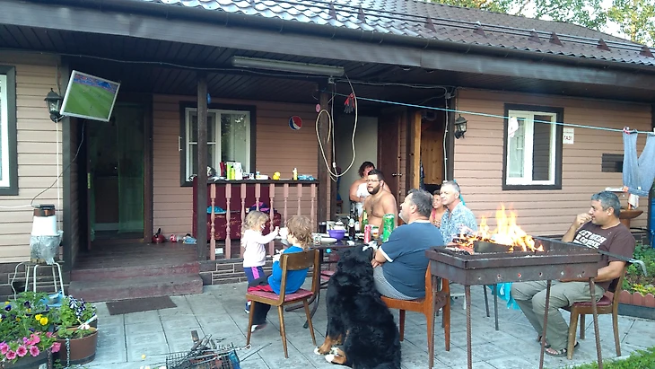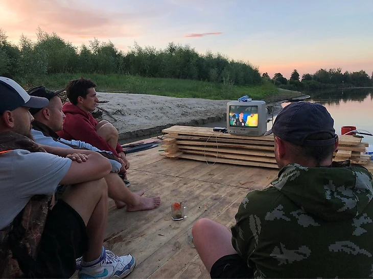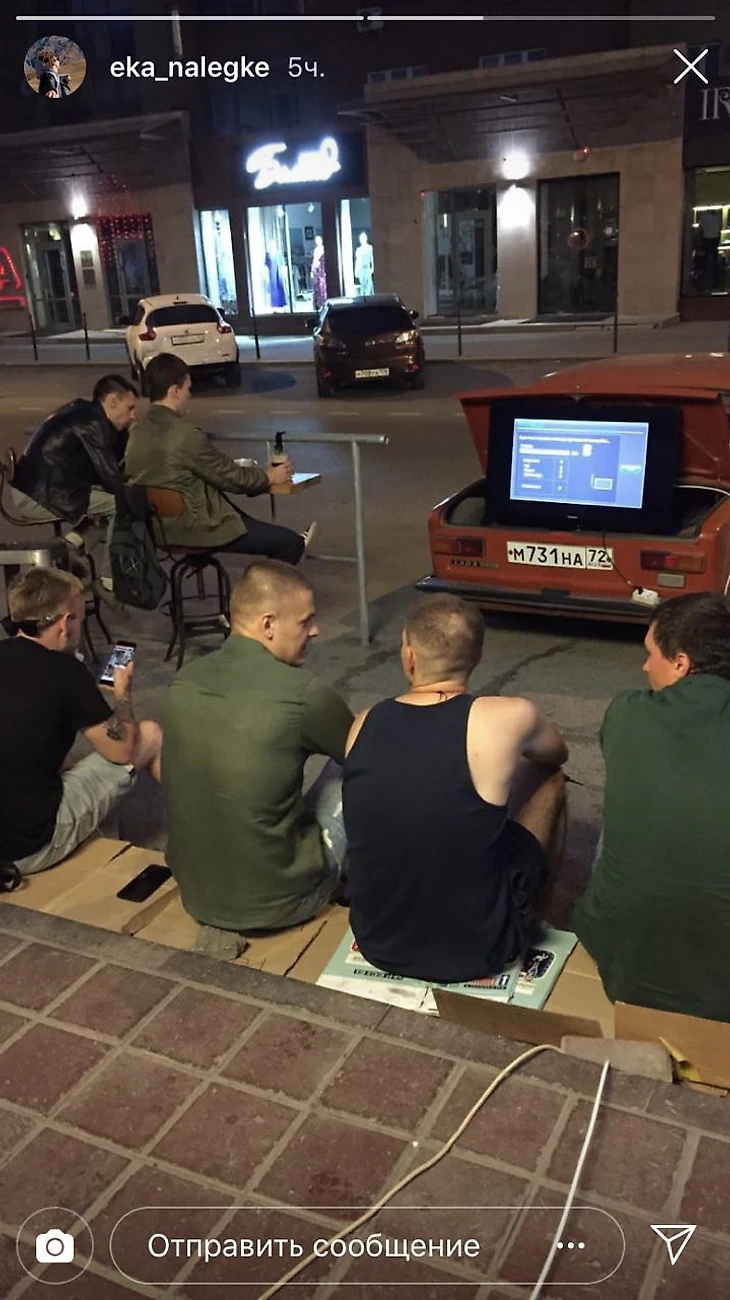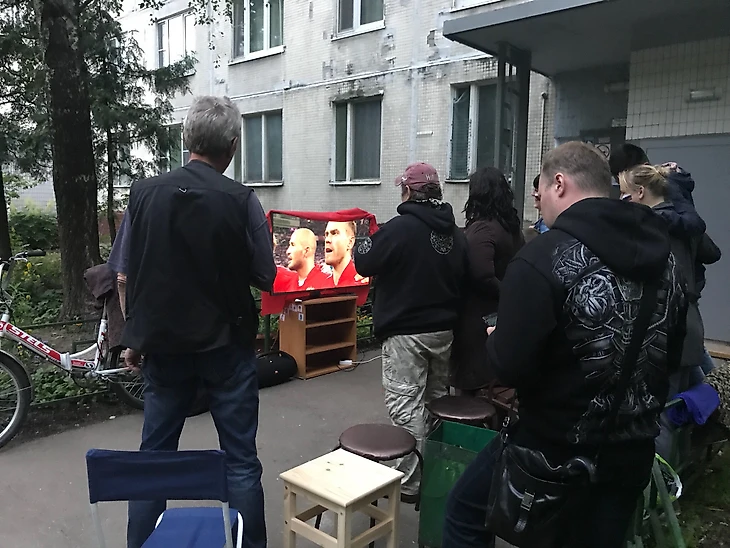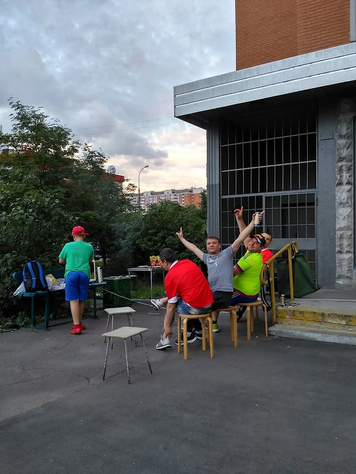 Бонус. Музыкант Макс Корж смотрел матч с братвой в родном Лунинце в Беларуси.