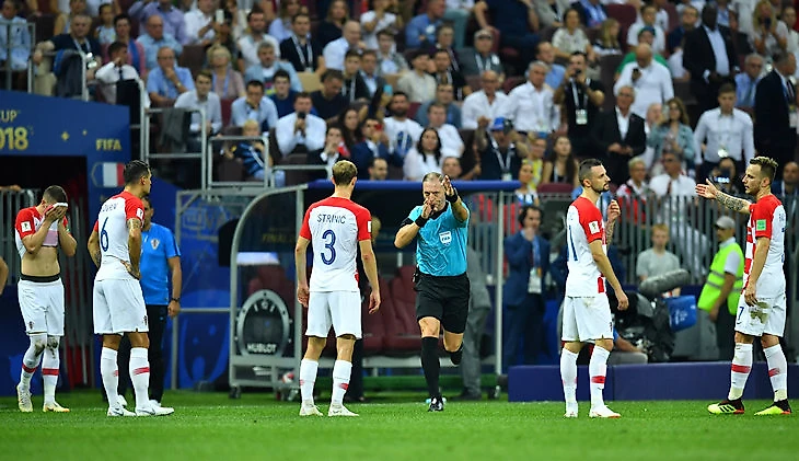 Затем Питана сделал пару шагов в сторону поля, но потом вернулся. Досмотрел повтор с еще одного ракурса. И решил – пенальти!