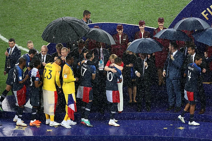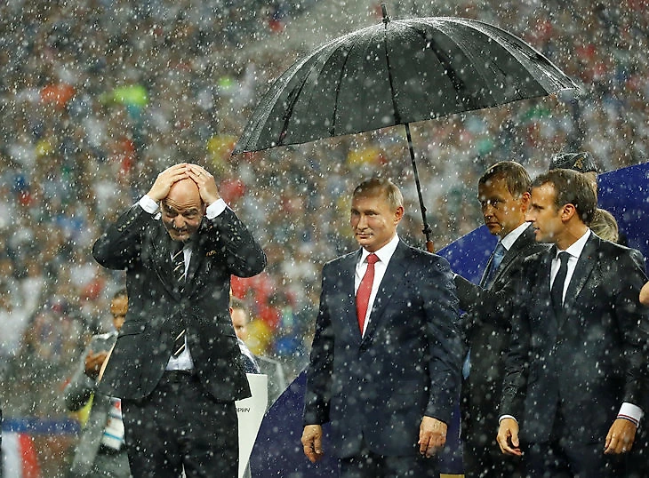 Во время церемонии награждения в «Лужниках» зарядил ливень.