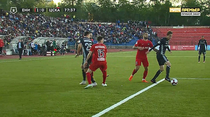 Но тут помог пенальти. Марио Фернандес проник в штрафную «Енисея», воспользовался миникасанием Бодула (форвард тут же одернул руку) и рухнул – контакт совсем не тянул на падение, но судья Роман Галимов назначил пенальти.
