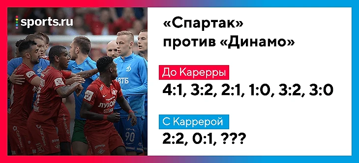 • Массимо Каррера не обыгрывал в РПЛ только «Динамо»: ничья прошлым летом (против Юрия Калитвинцева) и поражение от Дмитрия Хохлова. При этом до прошлого сезона у «Спартака» была шикарная серия: 6 побед подряд с общим счетом 16:6.