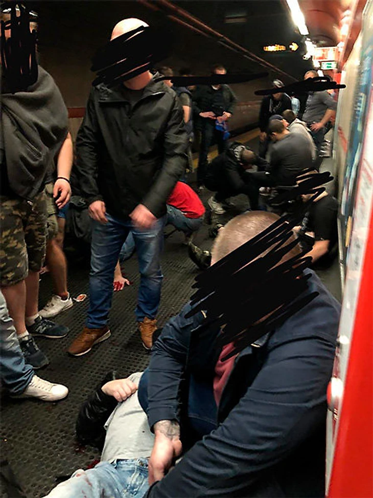 • «Люди 10-12 минут лежали без внимания персонала, – рассказал РИА Новости другой свидетель. – Сотрудники метро ничего не делали, мы им говорили, что внизу люди в крови, а они нам: «Мы знаем, мы знаем». Прибежали полицейские с дубинками, не разобравшись в ситуации, начали орать на итальянском и применять силу по отношению к болельщикам, которые не пострадали. Спустя еще две-пять минут появились врачи скорой, которые начали спускаться вниз».