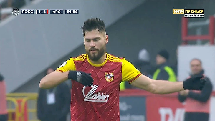 В матче «Локомотив» – «Арсенал» (Тула) защитник гостей Максим Беляев забил гол и отпраздновал это вальсом.