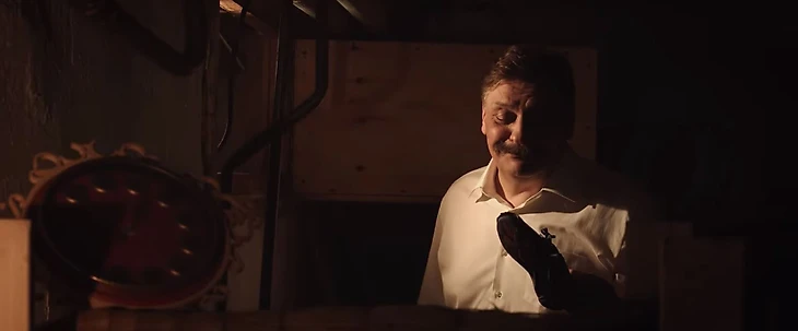 • Ещенко звонит директору школы-интерната и обещает приехать. Параллельно мальчик – главный герой, разбивает окно мячом, его запирают в темном подвале.