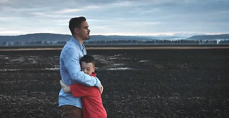 Ещенко замечает его в зеркале заднего вида. Просит водителя остановиться. Выходит из машины, парень его догоняет и обнимает.