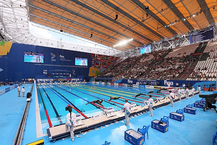 • 17 августа 2014-го «Рубин» впервые сыграл на новом стадионе, но уже в октябре команде снова пришлось переезжать. «Казань Арена» закрылась на реконструкцию к ЧМ по водным видам спорта. Вместо футбольного поля были сооружены временные бассейны.