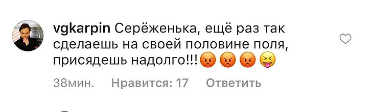 Опубликовав видео в инстаграме, Сергей получил вот такой комментарий от Валерия Карпина. Видимо, завидует: