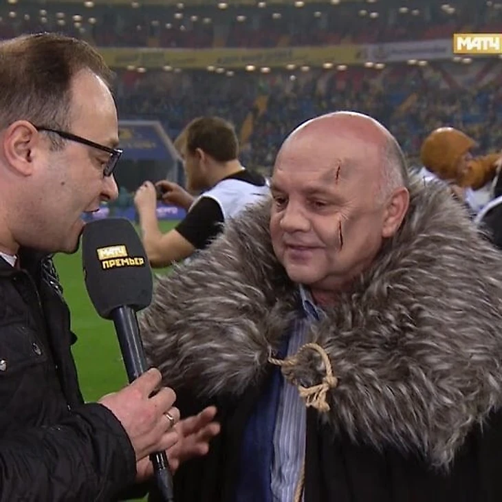 Бонус. После матча Игорь Гамула давал интервью Константину Геничу вот в такой прекрасной шубе.
