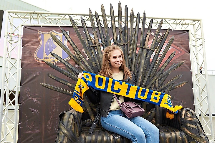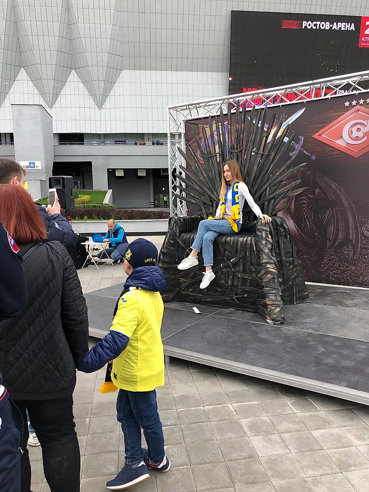 • Соцсетями «Ростов» не ограничился. Возле стадиона поставили копию Железного трона – каждый мог почувствовать себя Серсеей Ланнистер.