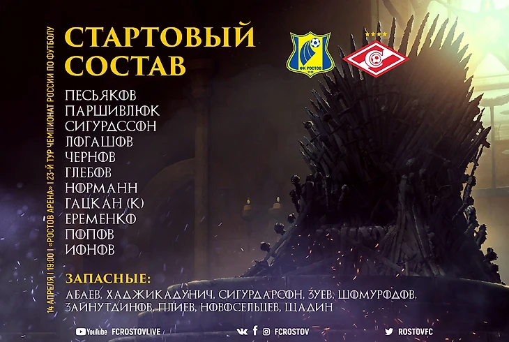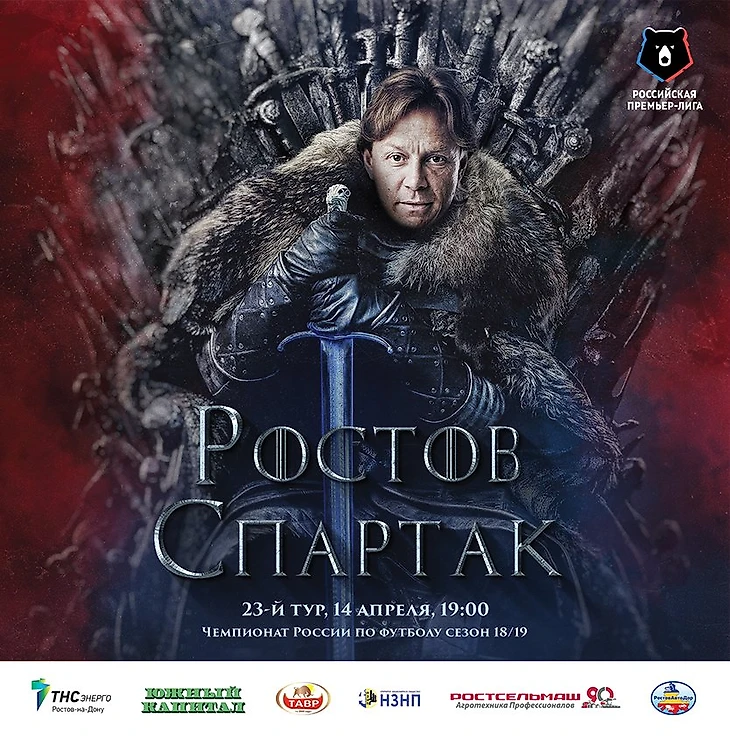 Выход последнего сезона «Игры престолов» не обошел РПЛ: «Арсенал» в стилистике сериала объявил о трансфере, «Енисей» анонсировал состав на матч с «Уфой», но масштабнее всех поработал «Ростов». Перед победной игрой со «Спартаком» (2:1) клуб провел целую промо-кампанию.