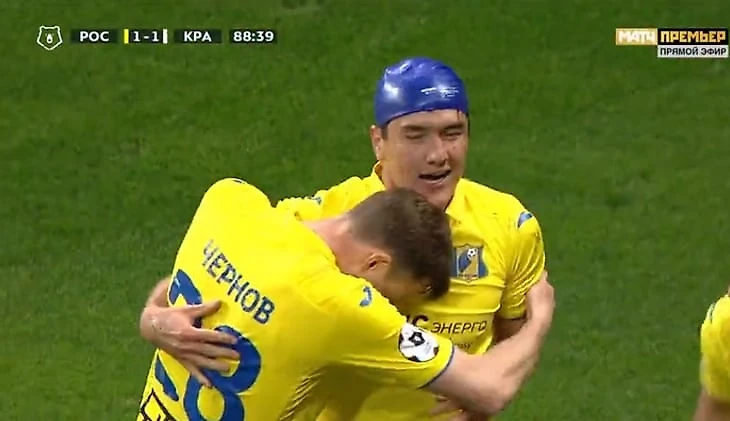 Шапочка из матча «Ростова» уже стала мемом. Ее надели на Шомуродова после рассечения, чтобы повязка держалась