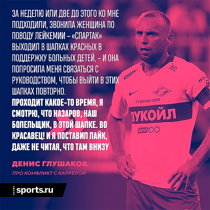 За неделю или две до этого ко мне подходили, звонила женщина по поводу лейкемии – «Спартак» выходил в шапках красных в поддержку больных детей, – и она попросила меня связаться с руководством, чтобы выйти в этих шапках повторно. Проходит какое-то время, я смотрю, что Назаров, наш болельщик, в этой шапке. Во красавец! И я поставил лайк, даже не читая, что там внизу.