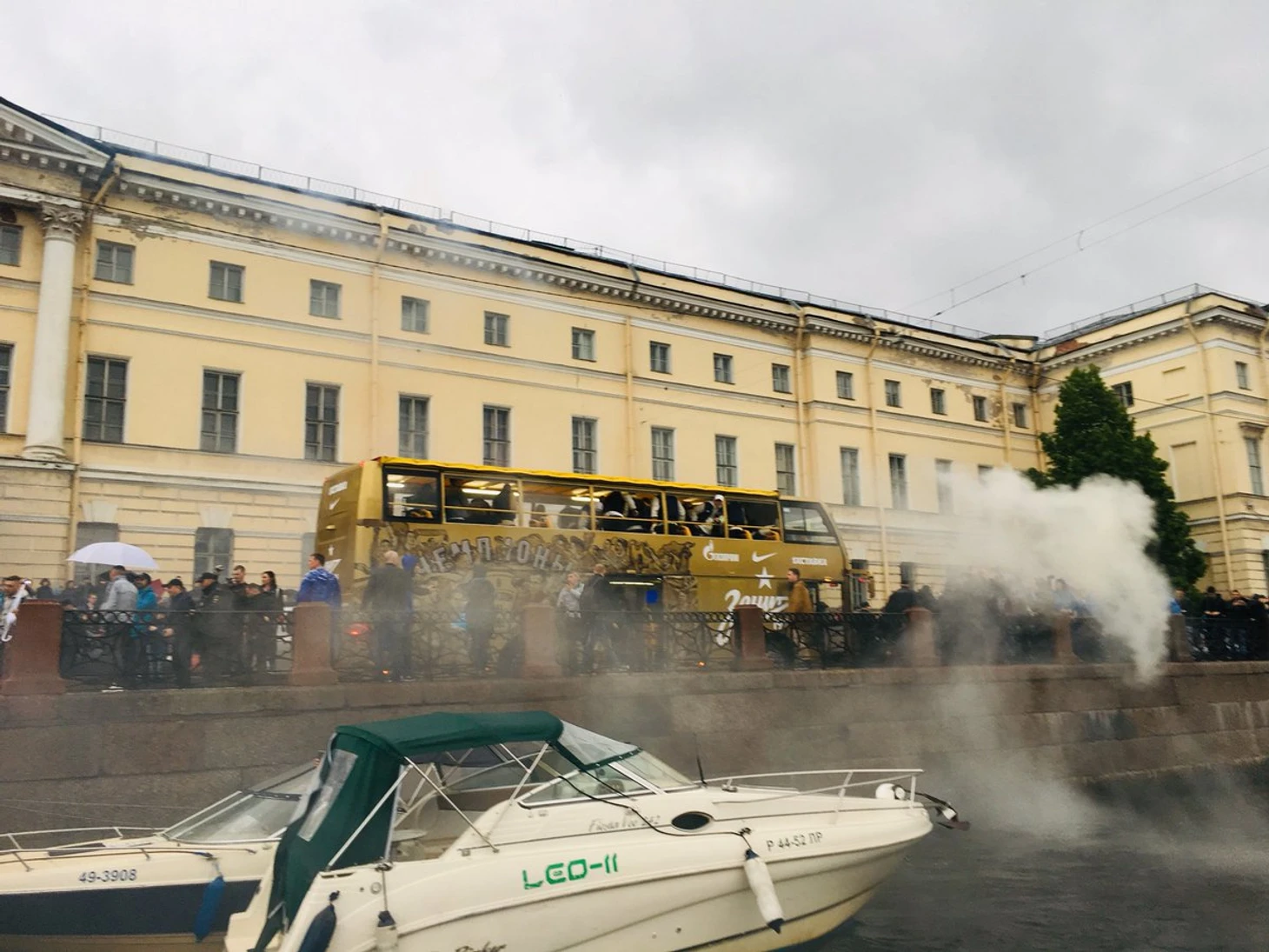 После поездки на автобусе «Зенит» отправился на празднование дня города на Дворцовой площади.