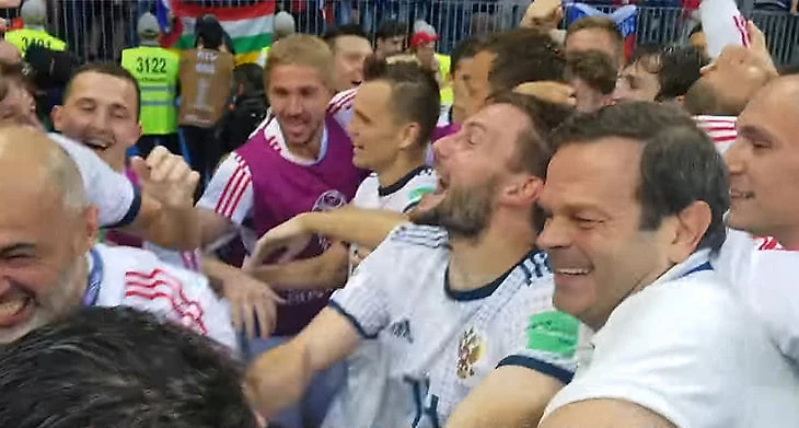 Да, он совершил глупость. Ну и что теперь? Теперь мы должны повесить на Смолова, что ядерная боеголовка там куда-то полетела из-за его пенальти? Если ты делаешь неправильные действия, в футболе этого не прощают. Но мы команда. Смолов же не бил пять пенальти хорватам. Он извинился перед командой и перед болельщиками.