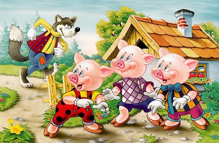 Мы подумали: почему бы не пересказать игру с помощью иллюстраций из сказки «Три поросенка»?