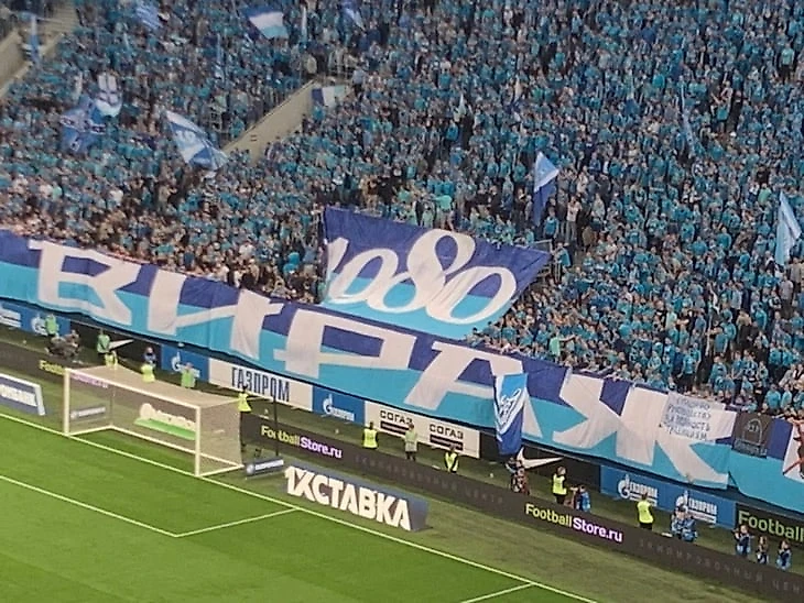Фанаты «Зенита» вывесили на Вираже мелкий баннер «Спасибо руководству за верность традициям».