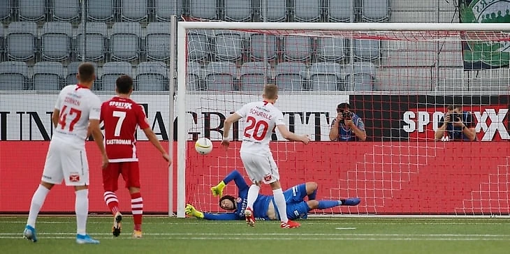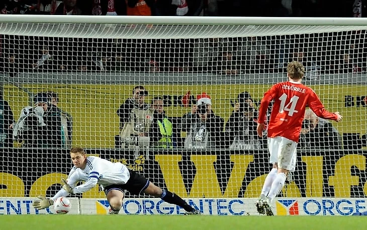 Через пять минут Шюррле благодаря пасу Понсе оказался в штрафной соперника и упал – несомненный пенальти. Андре подошел к мячу сам, но не забил: вратарь Гийом Фэвр, играющий в «Туне» уже больше 7 лет, прыгнул в правый от себя угол и отбил мяч.