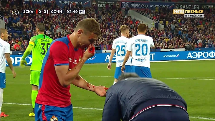 ЦСКА и «Сочи» сыграли 0:0 и после матча у армейцев были претензии к судье Виталию Мешкову. Во-первых, за грубый фол, после которого с поля ушел Арнор Сигурдссон (не сыграл и полчаса), во-вторых – за то, что Иван Миладинович на 93-й минуте ударил Федора Чалова по лицу рукой в штрафной и разбил тому лицо. VAR на этой игре не было.