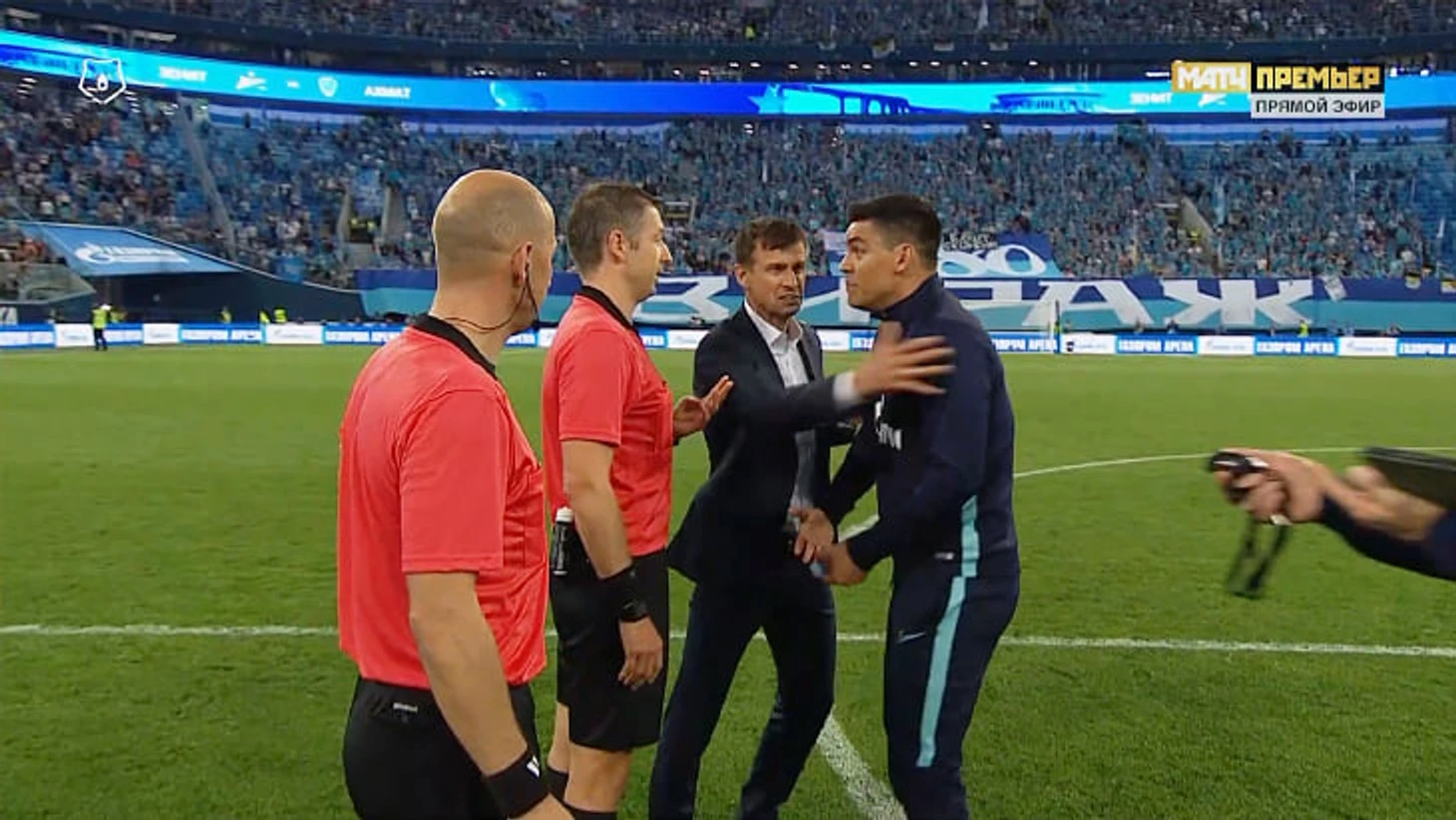 Уже после финального свистка к Алексею Матюнину и одному из лайнсменов подлетели возмущенные игроки «Зенита» и помощники Семака – Тимощук и Виллиам де Оливейра. Через несколько секунд в толпе появился сам главный тренер и резко попросил зенитовцев уйти в раздевалку (конкретно обращался к де Оливейре): «Не надо с этими козлами разговаривать». Семак имел в виду судей.
